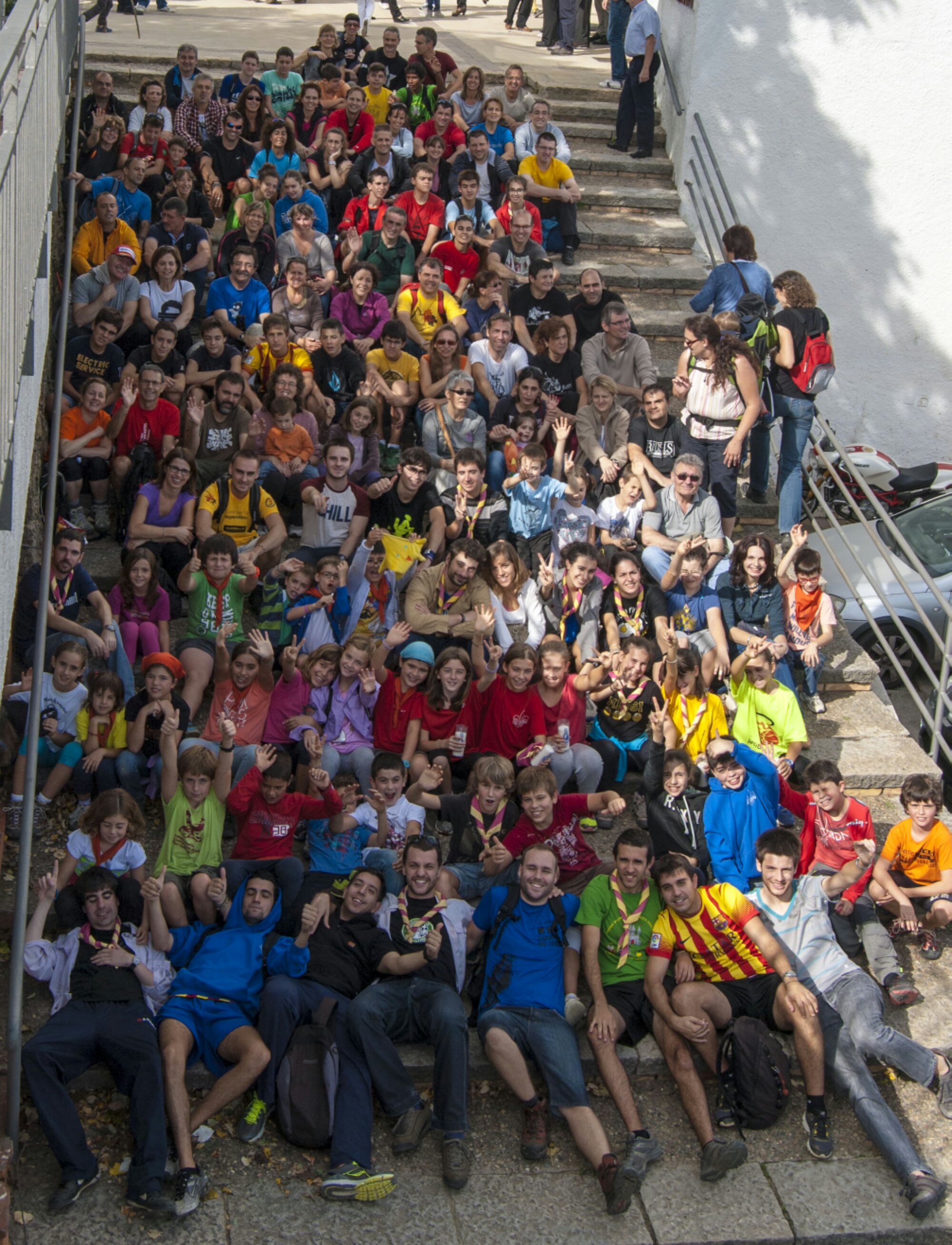 El passat diumenge dia 20 d’octubre, una colla de prop de 150 valents entre pares, mares, nens, nenes i el kraal de monitors, van pujar al santuari dels Àngels on hi havia una fantàstica recompensa en forma d’arrossada. Tothom va poder pujar sense gaire dificultats, amb un bon ritme de caminada. Al cap d’unes tres hores després d’haver sortit del cul de la Lleona, arribàvem al santuari dels Àngels, on alguns feien un petit aperitiu per celebrar l’arribada. Al acabar la foto de grup per tenir un record ben bonic, vam anar cap a l’esplanada per començar a recuperar forces amb una increïble arrossada. Tots vam menjar amb moltes ganes ja que haviem d’agafar energia per poder tornar cap avall. Després d’un fantàstic aplaudiment per agrair que tots havien fet la seva feina, uns van fer petar la xerrada mentre uns altres es perdien jugant pel bosc. Un cop recollit tot, anàvem baixant cap a Girona tot paint el dinar.